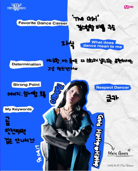 - 경력: HolyBang 리더 / 스트릿 우먼 파이터 시즌1 우승 / 다수의 방송 출연 및 퍼포먼스 디렉팅