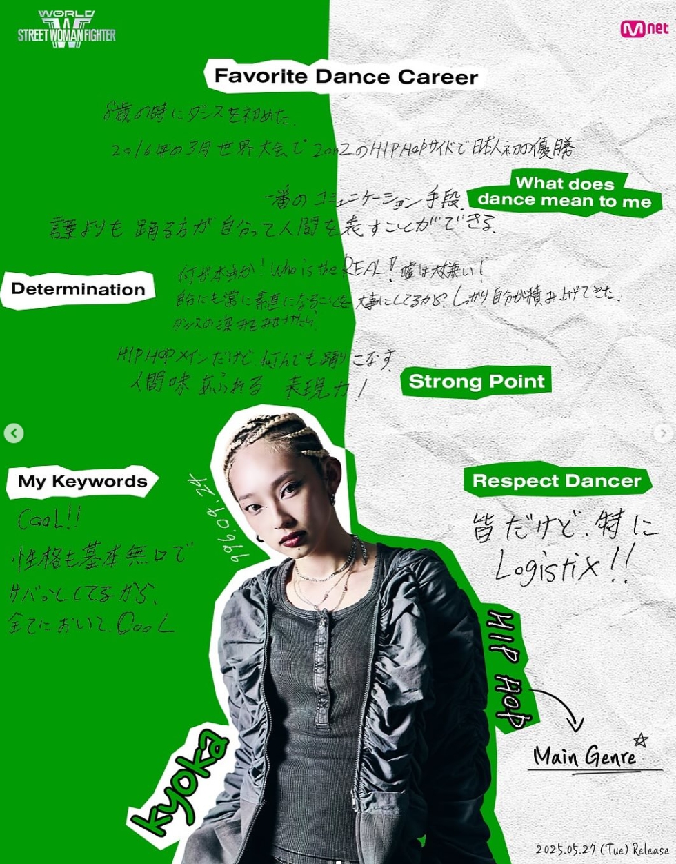 일본 출신 댄서 쿄카는 '스트릿 우먼 파이터 시즌3' 오사카 오조갱팀에 출연하며 세계적인 무대를 누비는 실력자라는 사실을 다시 한번 입증했습니다. 강렬한 퍼포먼스뿐 아니라 유쾌한 성격과