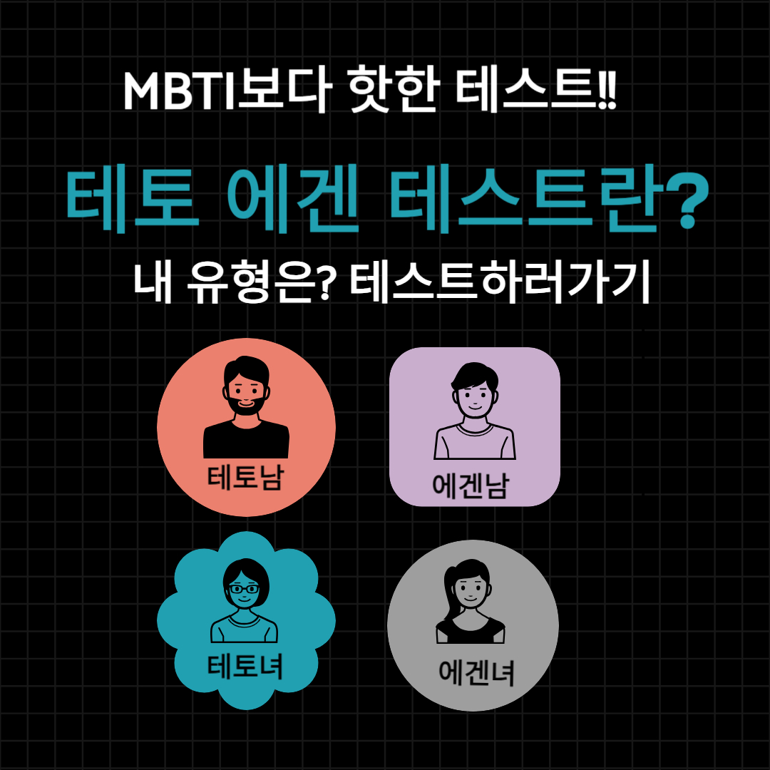 요즘 SNS에서 뜨거운 반응을 얻고 있는 테토에겐 테스트, 당신도 해보셨나요? 단 12문항으로 연애 심리 속 '테토남', '에겐녀' 유형을 분석해드립니다. 내 연애 성향이 어디에 속하는지, 지금 바로 테스트로 확인해보세요!