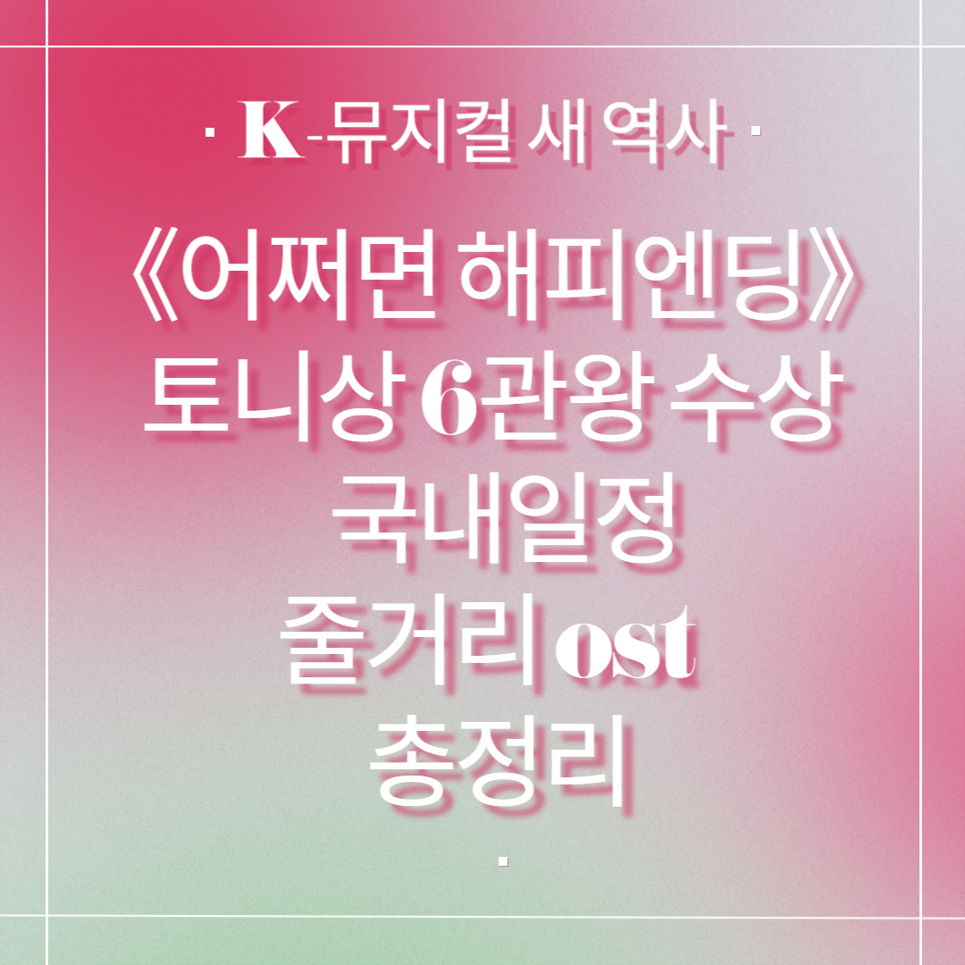 2025년 6월 9일, 미국 뉴욕 라디오시티 뮤직홀에서 열린 제78회 토니상 시상식에서 한국 창작 뮤지컬 《어쩌면 해피엔딩 (Maybe Happy Ending)》이 뮤지컬 부문 최우수 작품상을 포함해 총 6개 부문에서 수상하며 세계 무대에 'K-뮤지컬'의 위상을 새롭게 각인시켰습니다. 토니상 수상내역,작품 줄거리, 작품 하이라이트 보기, OST까지 완벽정리해 드릴게요!