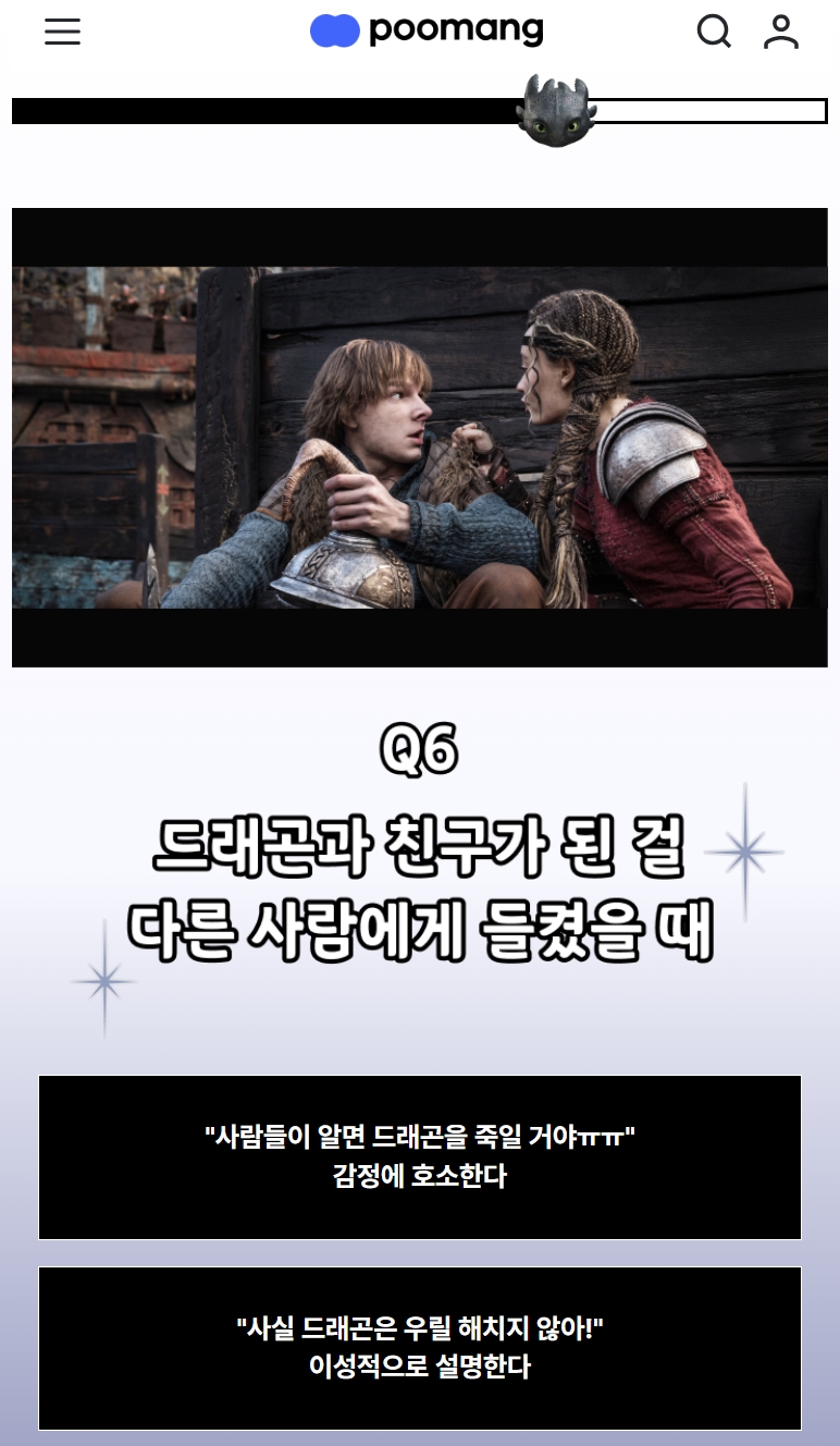 해당 테스트는 간단한 심리 질문에 답하면, 나의 성향과 가장 잘 맞는 드래곤 파트너를 매칭해주는 방식인데요.